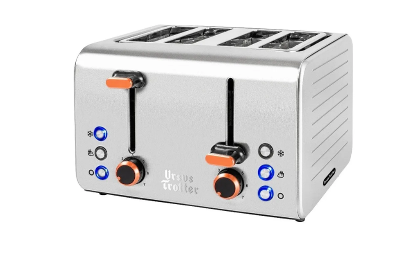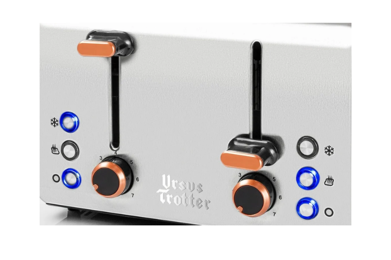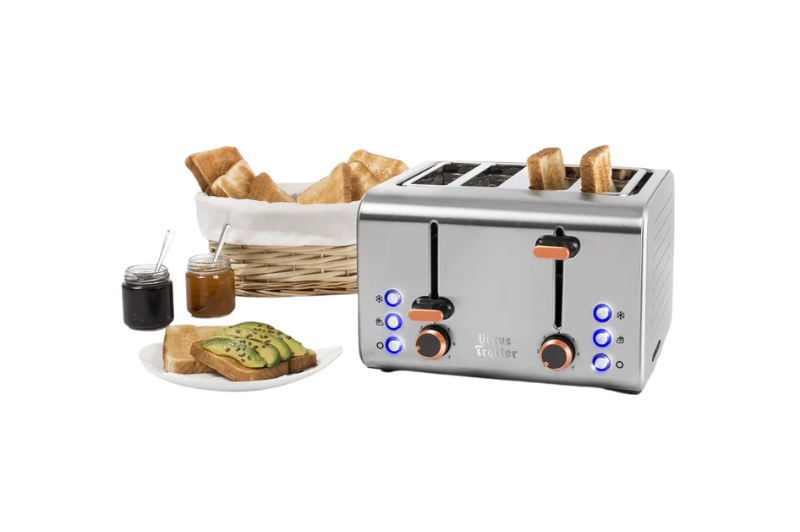 El tostador ECKART4 de Ursus Trotter se distingue por su diseño y funcionalidades. Con una estética y rendimiento sobresalientes, este electrodoméstico es un complemento ideal para cualquier cocina. – Capacidad para 4 panes. – Control electrónico de tostado. – Funciones de recalentado, descongelado y cancelación. – 7 niveles de tostado. – Sistema de paredes frías (cool-touch). – Cuerpo de acero inoxidable austenítico. – Bandeja para limpieza de migas fácilmente accesible. – Ranuras extra anchas. – Paredes de acero inoxidable austenítico que se mantienen frías al tacto. – Rejillas extra anchas (BREITE-TEK) para una amplia variedad de panes.