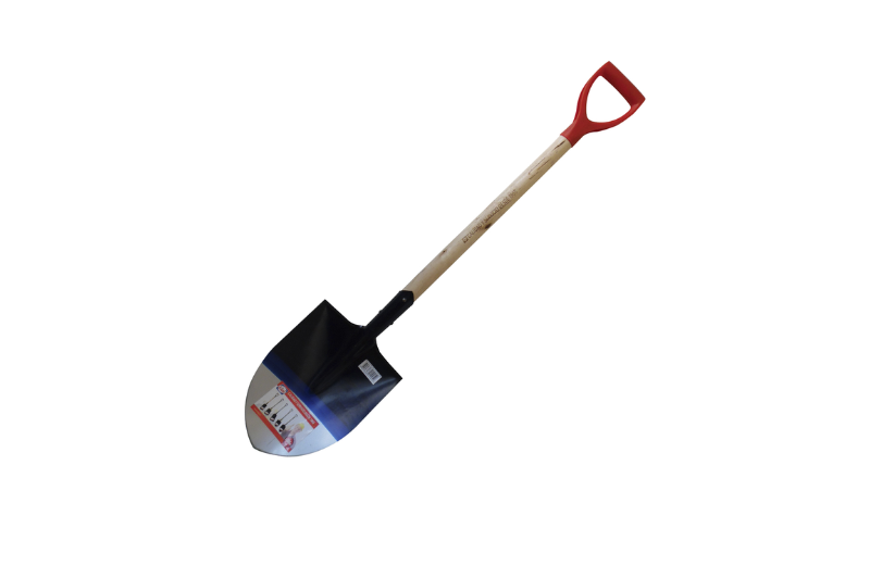 1 x PALA PUNTA HUEVO MANGO MADERA ASA PLASTICA ROJA