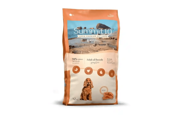 Composición: Salmón fresco (40%), harina de salmón (25%), patata deshidratada (20%), proteína de patata, grasas y aceites, salmón hidrolizado (5%), levadura, pulpa de remolacha, cloruro de sodio, polifosfatos de sodio (0,3%), cloruro de potasio, inulina (FOS 1.000 mg/kg), jengibre (1.000 mg/ kg), manano-oligosacáridos (MOS 260 mg/kg). Yucca Schidigera.
