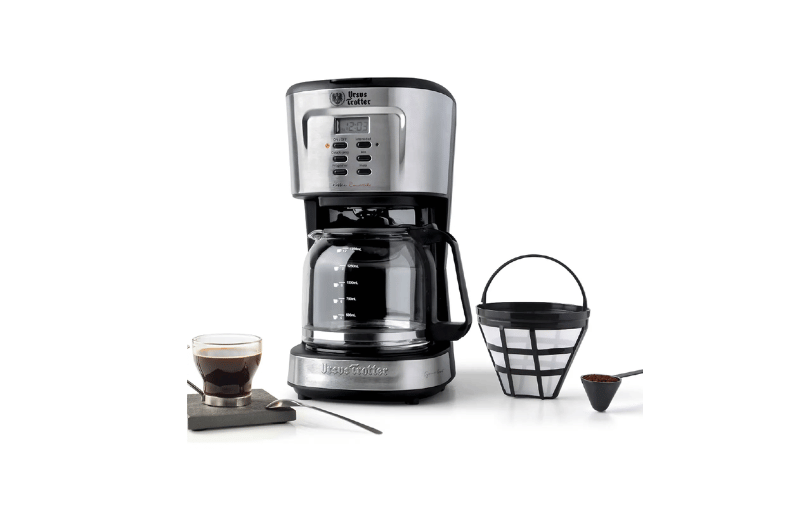 Disfruta del mejor café con la CAFETERA UT KAFFEEKLASSIK. Podrás programar la hora exacta para que tu café esté listo y disfrutar de una taza recién hecha en el momento perfecto. Su placa calentadora mantiene la temperatura por 40 minutos antes de apagarse automáticamente para mayor seguridad. Además, su jarra con boquilla antigoteo te permite preparar hasta 12 tazas de un exquisito café sin derrames.