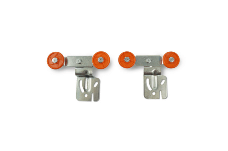 Sistema corredizo colgante para puertas de clóset de 30KG a 45KG. El Carro esta compuesto por un chasis y dos rueda de polín que permiten una mayor capacidad de carga que su versión simple. Instalación sobrepuesta y posee guía al piso ajustable al espesor de la puerta. Sistema se utiliza con riel U-20,