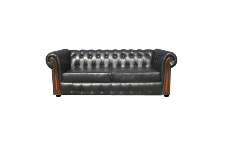 SOFA CAPITONE 3 CUERPOS PU MADERA NEGRO