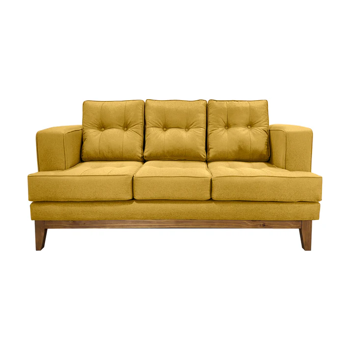 Sofá mañío 3c chenille mostaza 100% en madera natural, trabajados en poliuretano para dar una terminación elegante y duradera (todo producto armado)